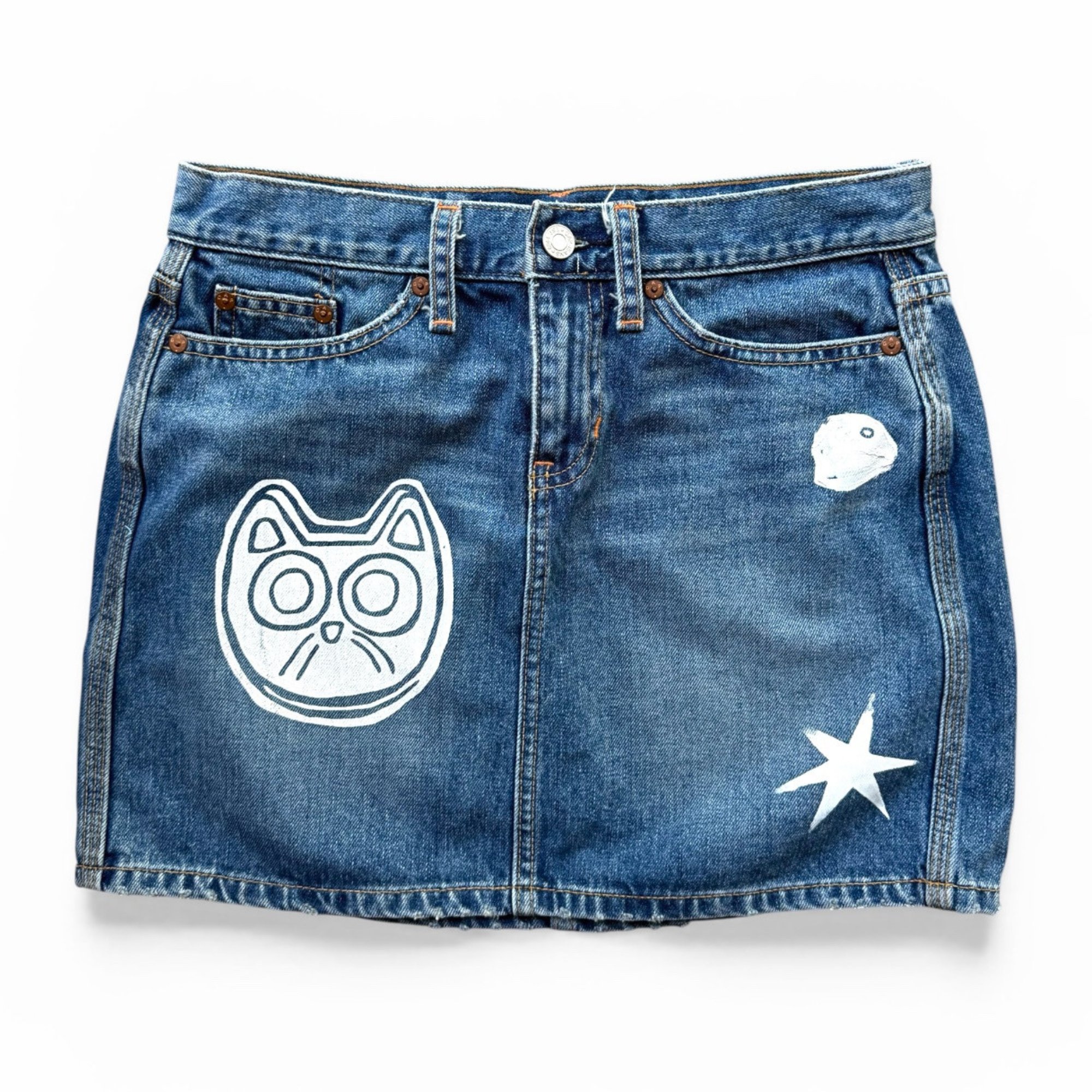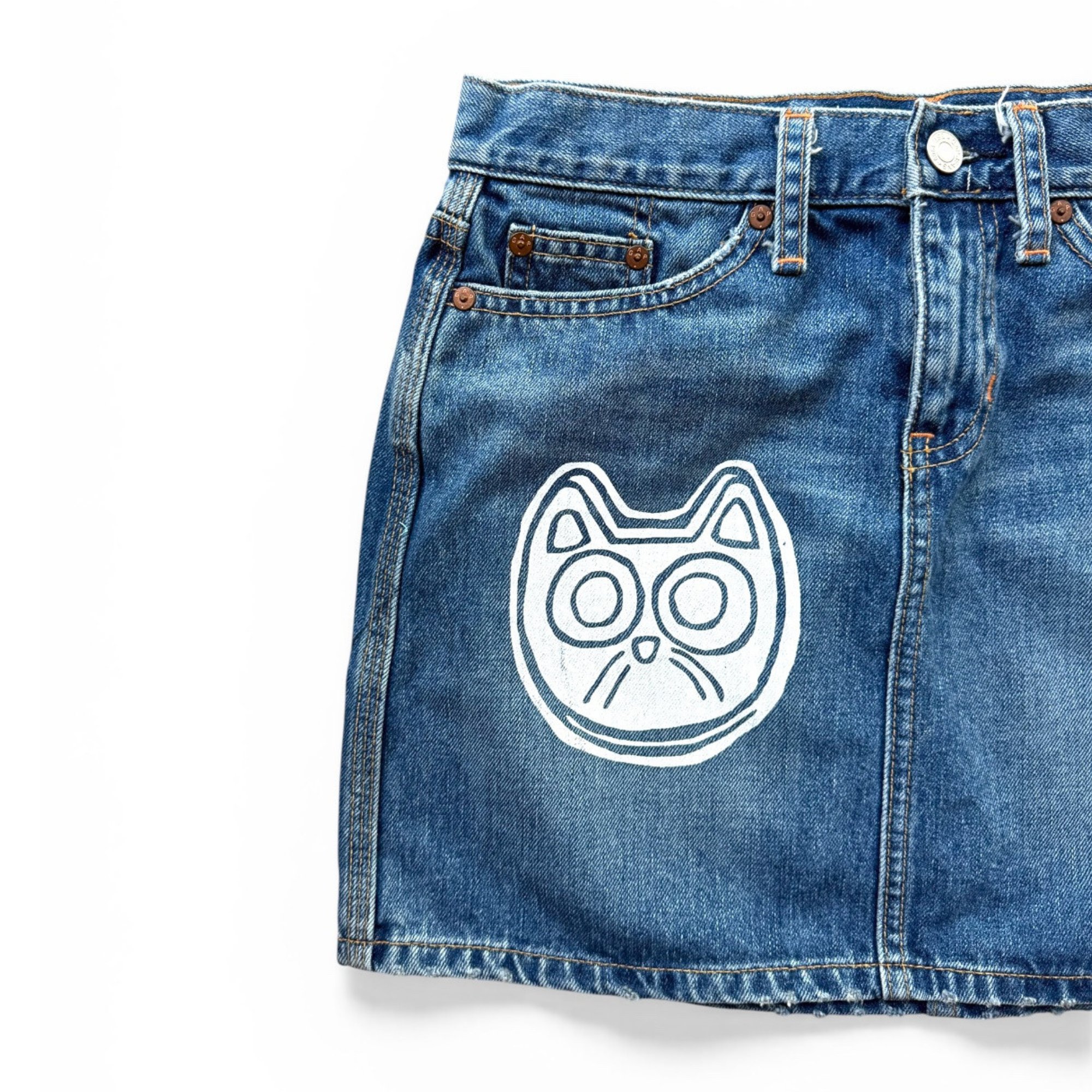hand screen printed denim skirt