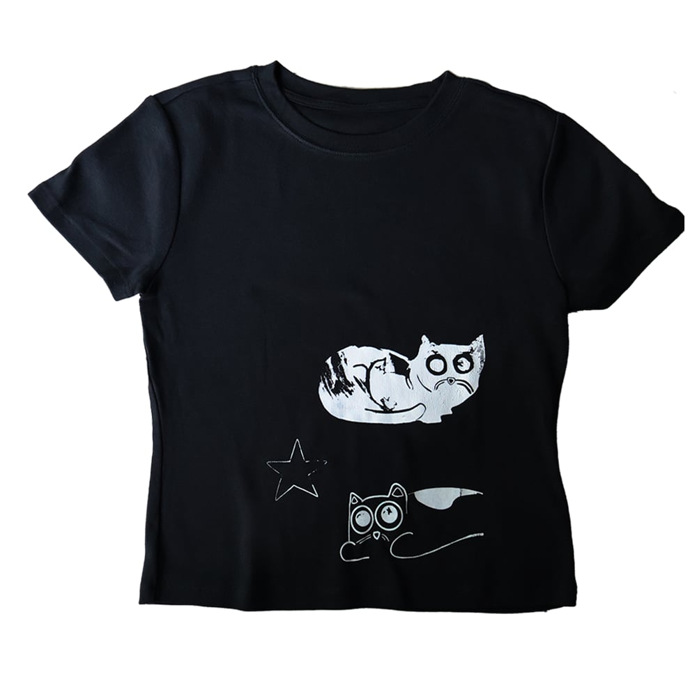 since each shirt is hand-printed, please consider slight variations in the print. makes each tee a little unique ≽^•⩊•^≼